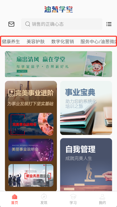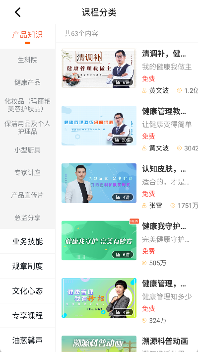 在主界面里查看各类别标签,快速选定类别后浏览对应的课程资源开展学习。