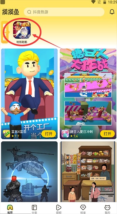 首先完成摸摸鱼的首次安装,接着进入主页面挑选自己想玩的游戏。
