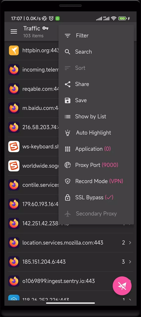 添加好目标应用后,点击主页右下角的小飞机图标开启抓包功能,随后进入轻颜相机随意操作两下,即可返回Reqable应用。