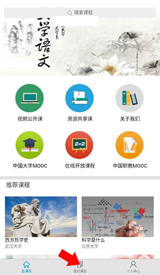 并打开爱课程,点击下方导航栏中的【我的课程】。