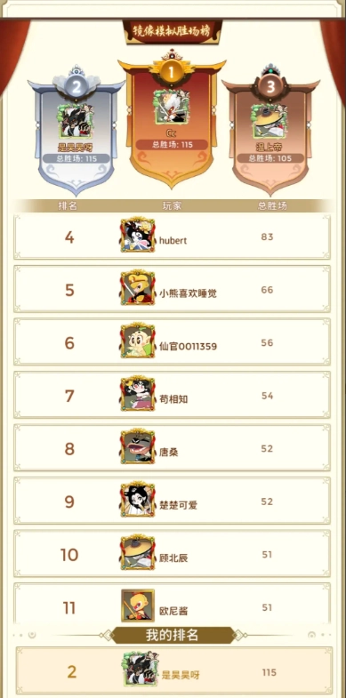 注:此强度榜结合多位大佬的实战经验,但仍有不准确之处,如果实在不知道用哪个主c可以在对局内查看五个英雄的面板。另附本人镜像胜场排行榜