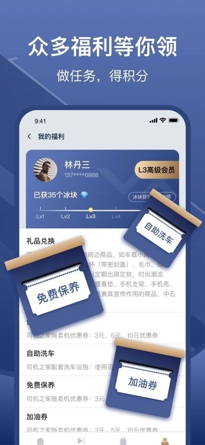 福利多多:礼品兑换、优惠券兑换、自助洗车等丰厚福利