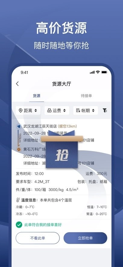 海量货源:普货、常温、冷藏、冷冻,短途、长途,整车、零担各类运单信息