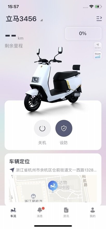 ⊙车况涵盖:车辆各项设置、实时定位信息、充电所需时长、剩余续航里程、骑行数据统计以及历史行驶轨迹等内容。