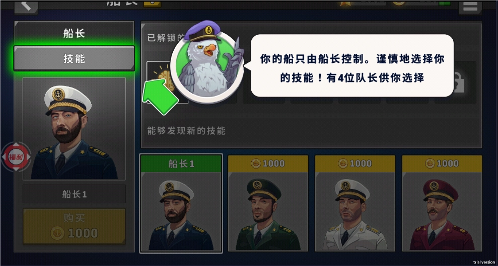 3、快来挑选你心仪的船长负责物资运送吧,每位船长都拥有独特的技能呢!