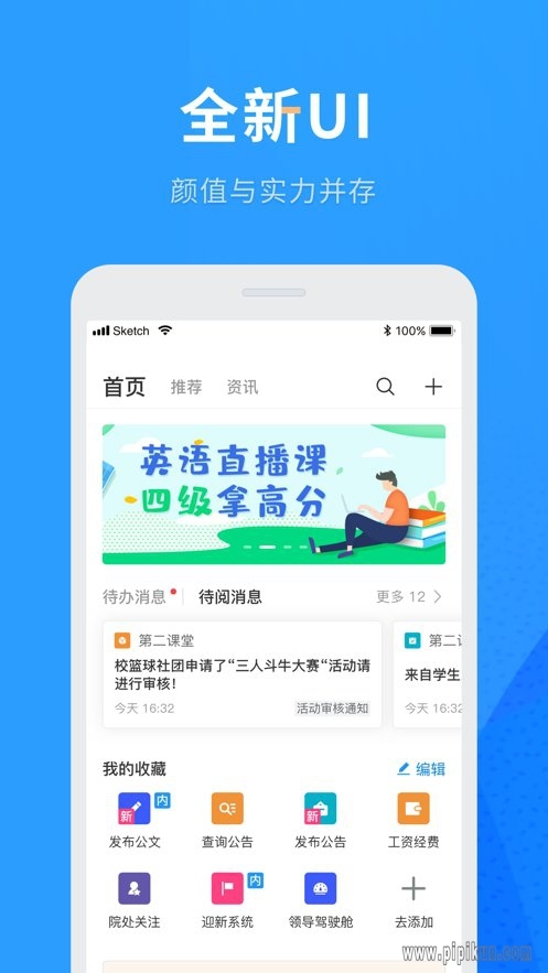 支持校园信息发布、公文在线流转、公告查询、工资资金查询、欢迎系统使用以及待办事项处理等功能。