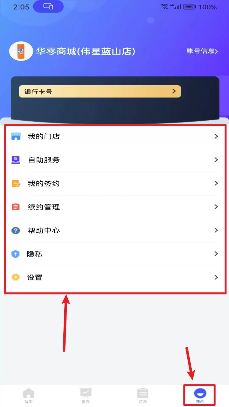 点击右下角的“我的”进入个人管理中心,就能查看门店信息、合同管理、隐私设置等相关内容。