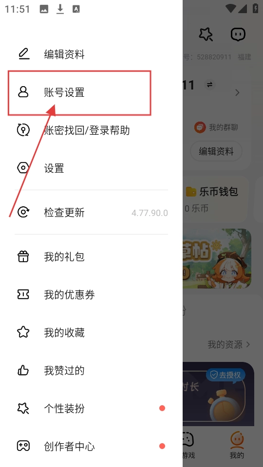 在侧边栏菜单里,要是需要调整账号相关的设置,点击【账号设置】这个选项,就可以进入到账号与绑定设置的页面了。