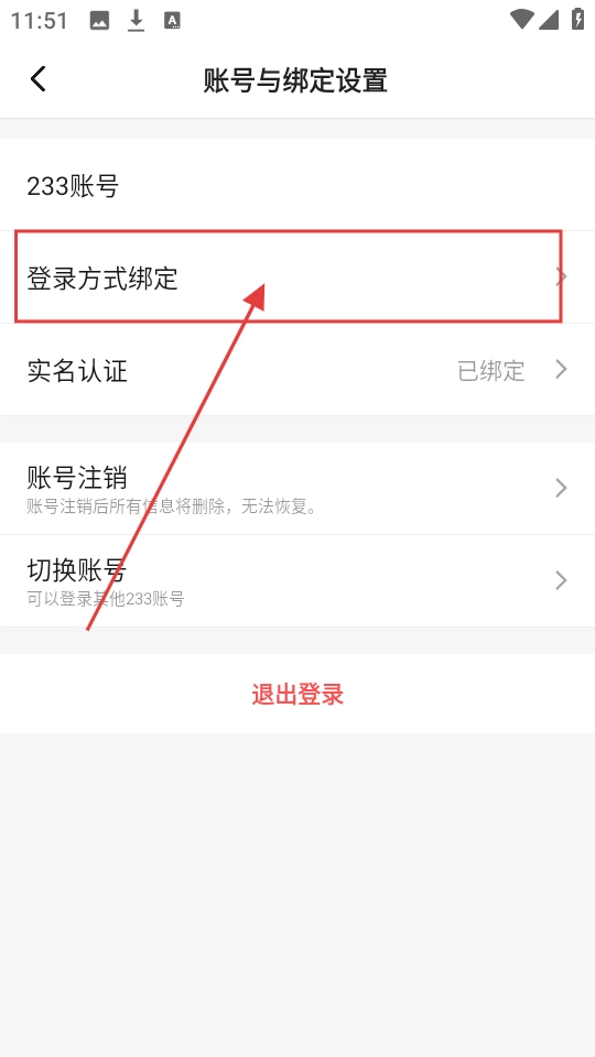 2、进入账号与绑定设置页面后,若需设置登录方式,点击【登录方式绑定】选项,即可进入登录方式绑定页面。