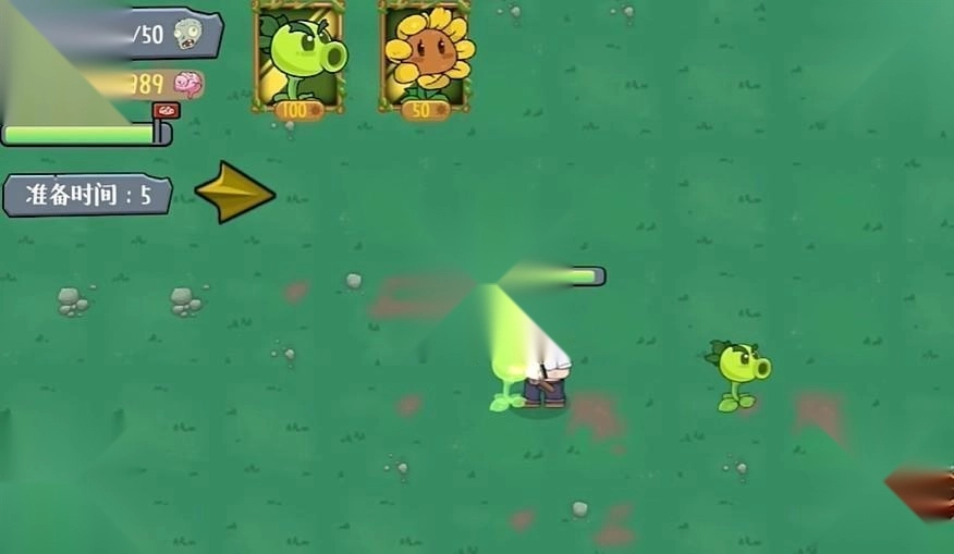 5、每一波来袭之前,都会有一小段准备时间,戴夫可以利用这段时间种植植物。