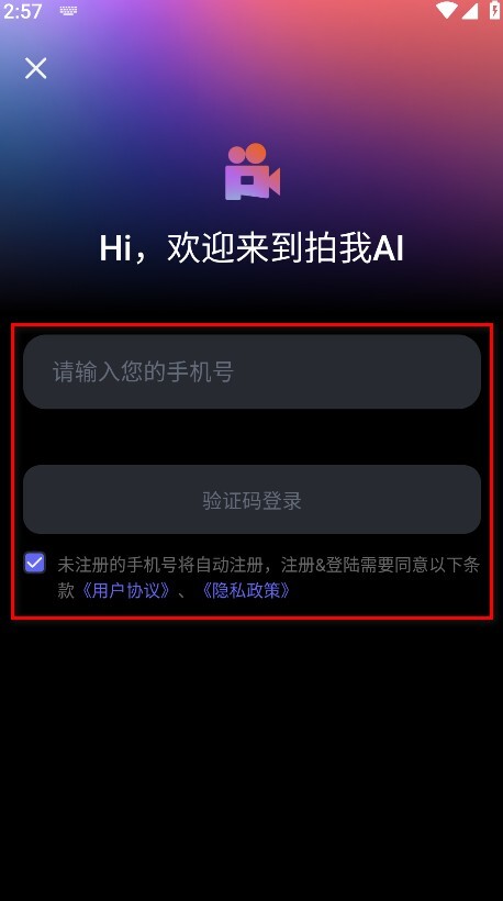 请输入手机号码,若勾选的是未注册手机号将自动完成注册;注册与登录需同意《用户协议》《隐私政策》等条款,之后点击验证码登录即可。