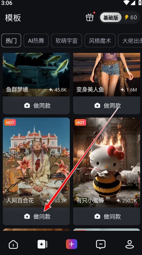 这里有超多精选的AI特效模板素材,热门特效题材资源十分丰富,像毒液效果、肌肉效果、羊毛卷发型等各类视频特效内容都能轻松掌握,以后大家使用AI视频创作工具会非常便捷。