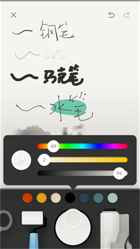 接下来进入创作界面,界面下方分布着各类绘画工具,你可以挑选合适的画笔在页面上开展创作。