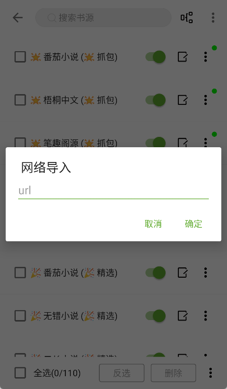 若您选择网络导入方式,需先获取书源的网络地址,准确输入该URL地址后点击【确定】按钮,系统便会自动从该网络地址导入书源。