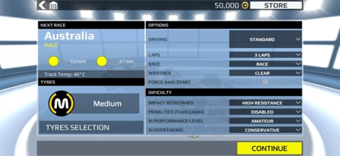 每个轮胎都具备独特的抓地力、最高速度和磨损特性。不过这一功能在FormulaUnlimited里是无法使用的。