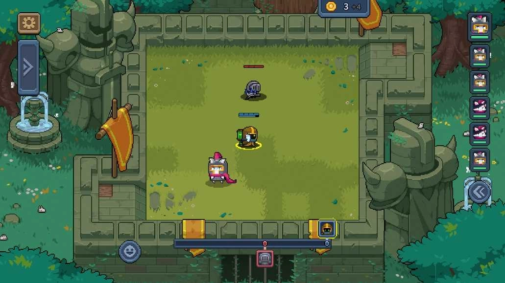 3、玩家需从随机生成的英雄池与装备池中挑选骑士和武器,通过合理排兵布阵,组建出最优阵容来参与自动战斗。