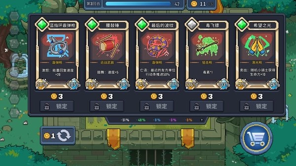 2、【阵容强化】当场上同时配备3把相同的武器时,可激活“三连”效果,将普通武器升级为“闪耀武器”,以此来强化阵容。