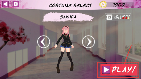 1、在【COSTUME-SELECT】界面选好角色装扮,点击【PLAY!】按钮就能进入游戏关卡。