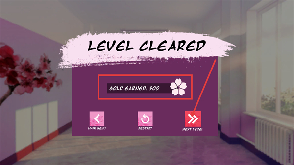 4、通过关卡后将得到【GOLD-EARNED:500】的奖励,点击【NEXT-LEVEL】按钮就能进入下一个关卡。