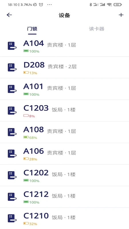 在房间管理页面,点击右上角的“+”按钮,会弹出房间信息的添加选项菜单。