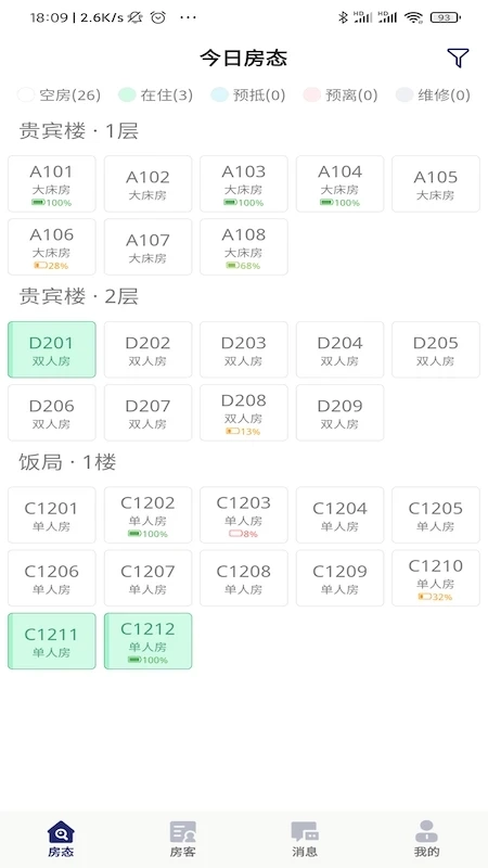 在“今日房态”页面,要是看到“还没有添加房间信息”的提示,点击【立即添加】按钮,就能进入房间管理的操作界面。