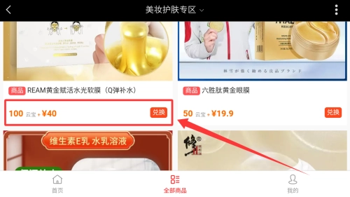 可以看到产品底部显示购买该产品所需的云宝数量与金钱金额。