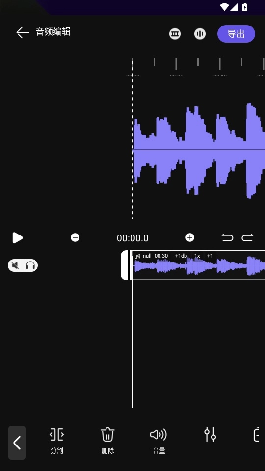 4. 进入音频编辑页面后,可利用音量调节、均衡器、删除片段、分割音频等工具对音频进行剪辑处理。