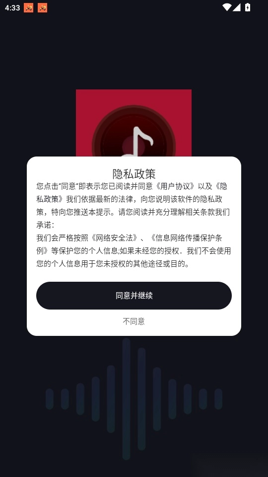 1. 启动软件后阅读“隐私政策”,点击“同意并继续”按钮进入下一步。
