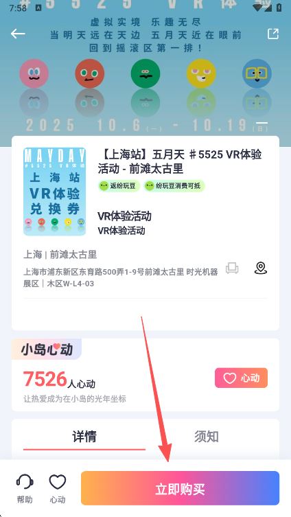 2、进入门票详情页后点击下方购买