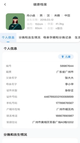 2、个人及家人的健康信息可一键查询,记录健康成长的每一步。