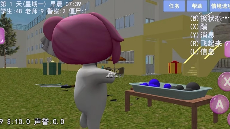 1、碰到僵尸别硬拼,先切换状态躲到角落,等它离开或者找警察、老师来帮忙处理。
