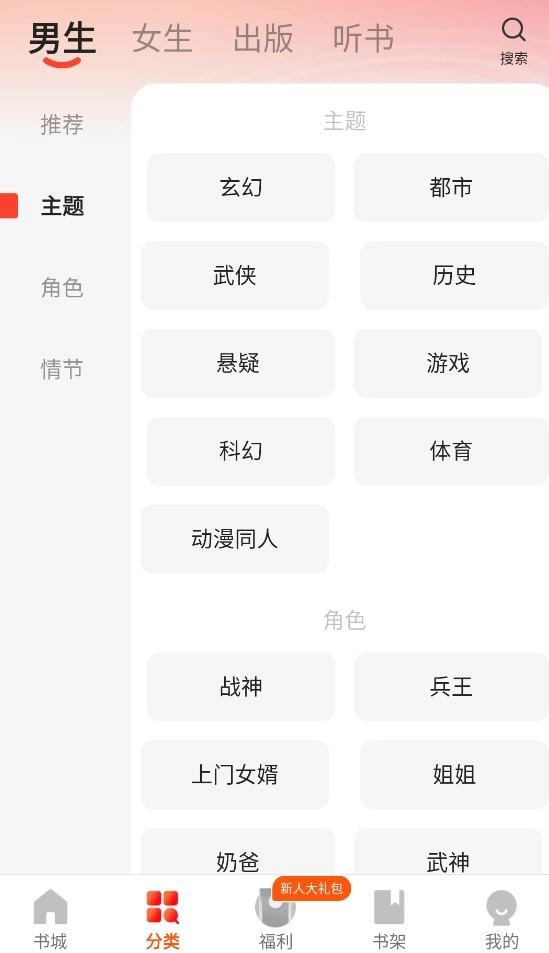 2、在“分类”页面中可以查看多种小说分类
