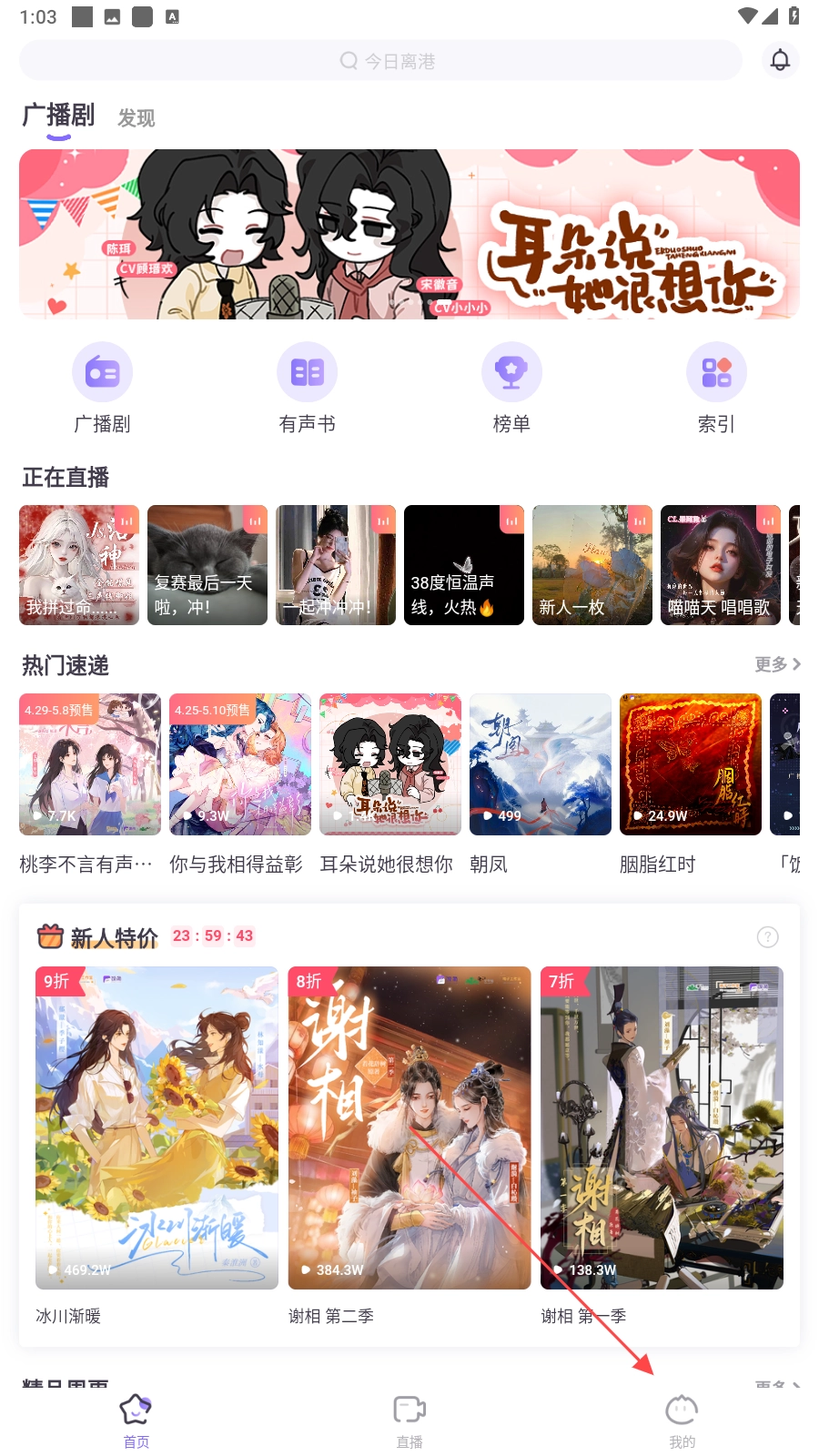 1、在首页【广播剧】板块,选择感兴趣的广播剧。
