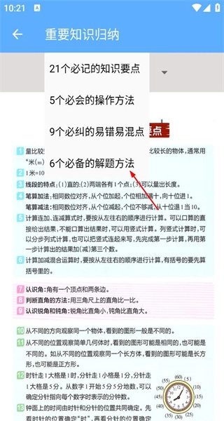 3、在知识归纳页面,可切换查看必会操作方法、易错易混点等板块,从而学习不同类型的数学知识。