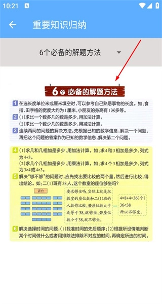 4、找出6个必备的解题方法板块,查看长度单位选择、加减计算等内容对应的解题思路和示例。