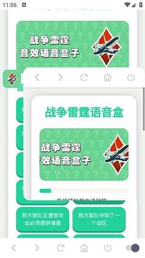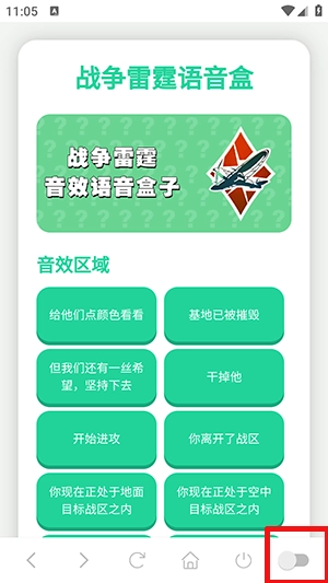战争雷霆语音盒是一款十分实用的语音工具,界面设计简洁直观,操作步骤简单清晰,不管是刚接触的新手还是熟悉操作的老用户都能轻松驾驭。它具备点击按钮播放音效或音乐、设置延迟播放、自动播放、单击循环播放等多种功能,能满足用户不同场景下的使用需求,还提供了悬浮窗模式,便于用户在同时处理多个任务时快速调用语音包。