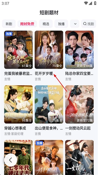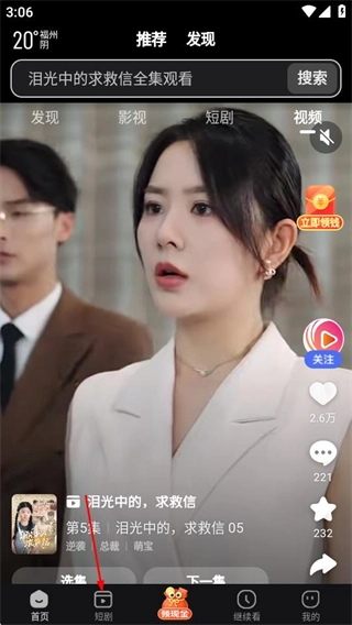 3、在甜宠短剧的列表里,挑选一部自己感兴趣的短剧,然后进入这部短剧的播放页面。
