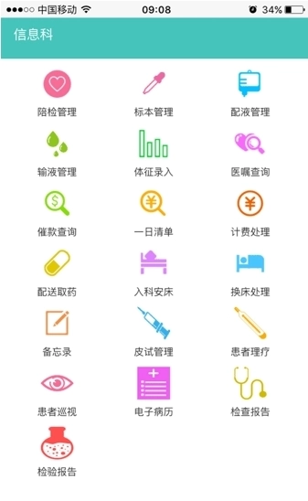 如图所示,您登录后点击下方的功能选项,易护士的全部功能便会呈现,您可根据自身需求选择使用!