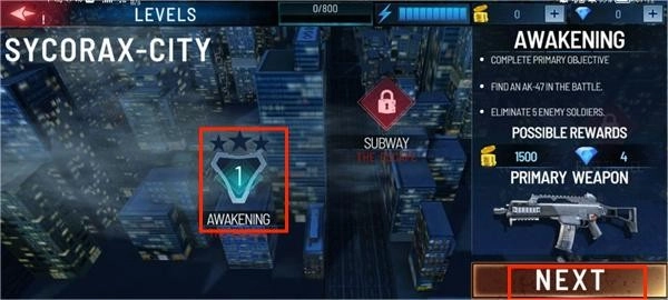 3、选择模式下的关卡,点击NEXT;