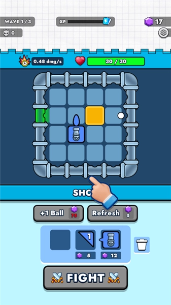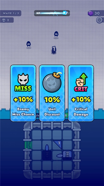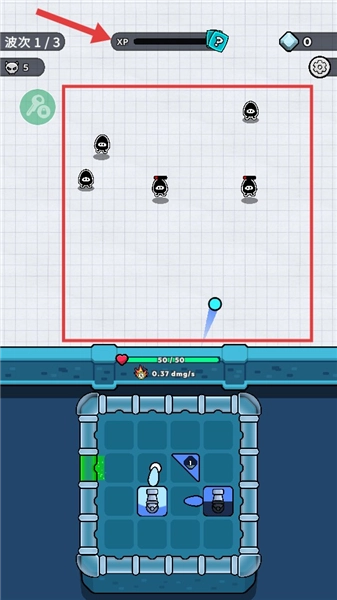 2、在战斗过程里,借助预先布置好的炮台来发射弹球,弹球会通过弹跳的方式对敌人发起攻击,你需要持续消灭当前波次里的所有敌人,以此来获取经验值。