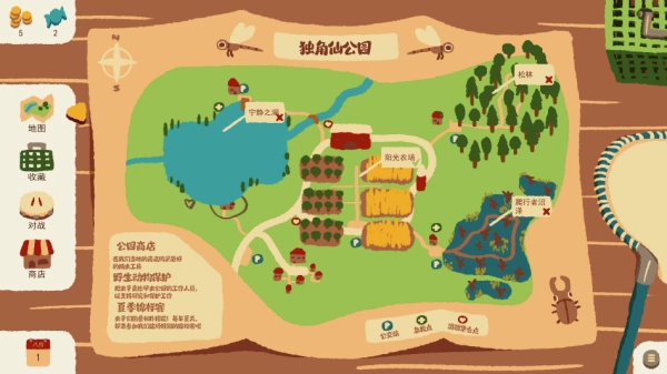 1、玩家能够在多个公园内展开探索,捕捉不同等级的昆虫。