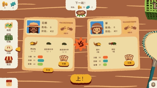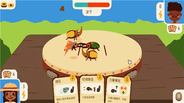 4、战斗环节采用回合卡牌机制,指挥你的昆虫小队把对手驱逐出擂台就能赢得胜利。