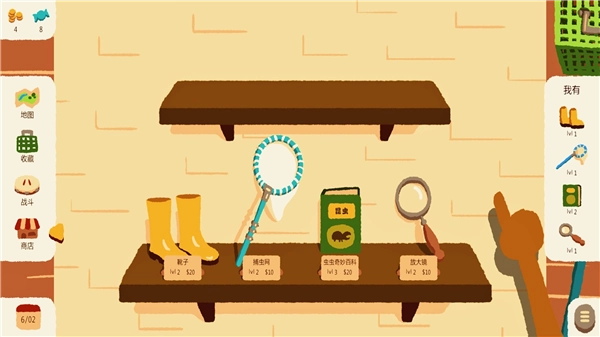 3、玩家能够对各类探索装备进行升级或更换,更优质的装备有助于你更高效地发现并捕捉到稀有且强壮的昆虫。