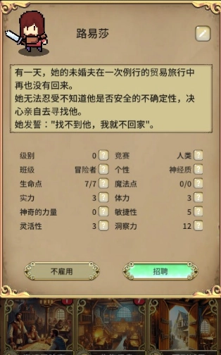 6、找到我们需要招聘的冒险者,点击右下方【招聘】