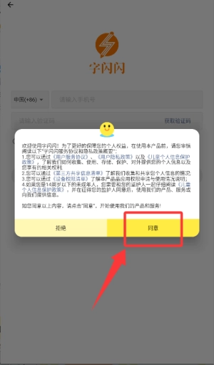 1、在服务协议和隐私政策的提示弹窗里,选择并点击“同意”选项,即可进入后续操作步骤。