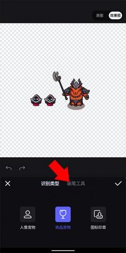 2、在打开的相册界面中选择想要抠图的图片并等待一段时间,可以看到图片背景已经被智能扣除,如果想要进一步扣除图片内容,点击下方的画笔工具。