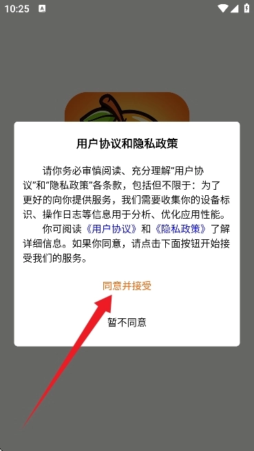 2、进入到软件首页,如图所示。首先请同意用户协议和隐私政策。