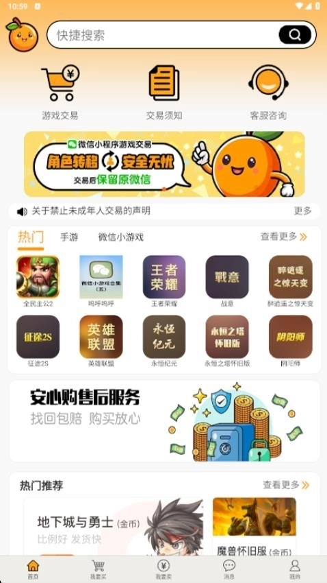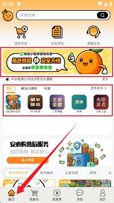 3、首页提供安全可靠的微信小程序游戏交易服务,覆盖多款热门游戏的在线交易需求。