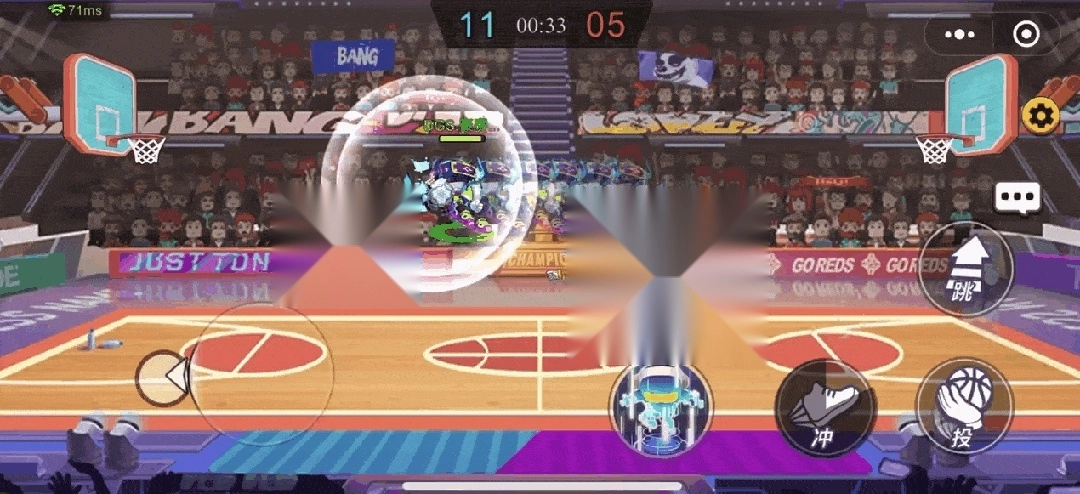 球宝会带着篮球从篮筐的一侧飞出,我们可以借助被打两次就会掉球的机制来抢夺球。