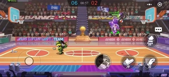 反弹球的操作是这样的:当对手投球后,你站在篮筐下方,通过二段跳后点击攻击键,就能把对方的球打回去,而且还有概率直接得分。